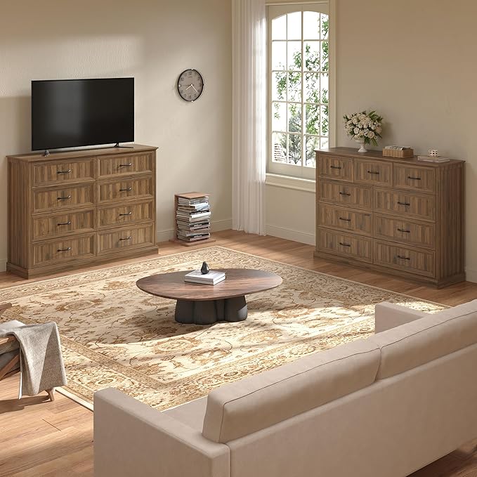 - 【Durable Finish & Multi-Color Options】This farmhouse drawers dresser with scratch-resistant laminate and eco-friendly paint, Available in dark browns for rustic spaces and crisp whites for modern décor, as well as deep, sophisticated browns, all three colors are designed to effortlessly complement any room.