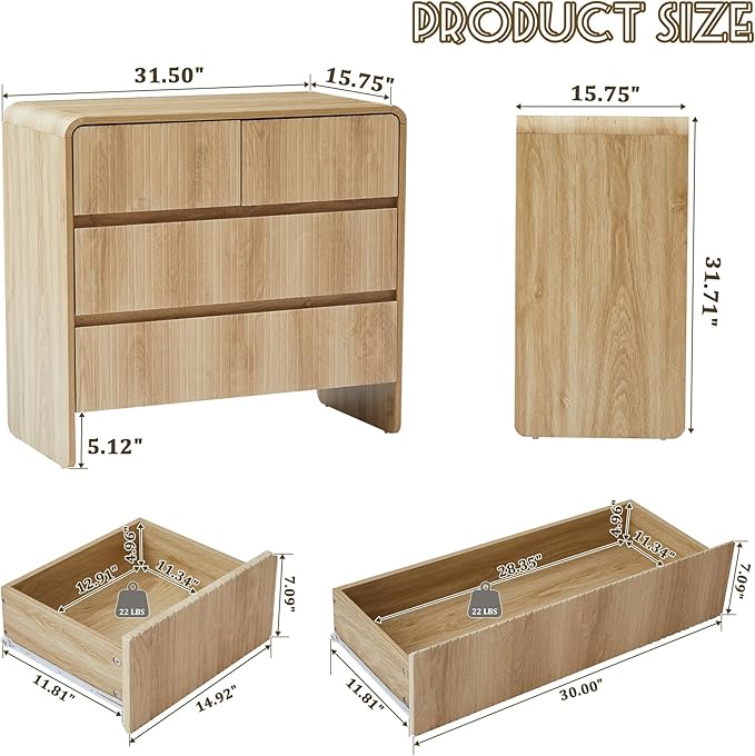 - Ample Storage with Versatile Functionality: With a spacious layout, this wide 3 drawer dresser includes four drawers—two large and two small—measuring 15.75”D x 31.5”W x 29.5”H. Perfect for storing your essentials like glasses, photos, cosmetics, and more, it helps keep your items organized and your space feeling calm and tidy.
