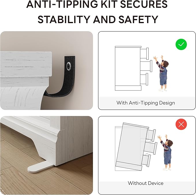 - Stable & Built to Last: Crafted from high-quality engineered wood, this chest of drawers handles heavy daily use with a 25 lb capacity per drawer and 250 lbs on top. Reinforced construction ensures stability and safety, a long-lasting storage solution that combines strength with stylish farmhouse charm