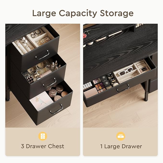 - Durable and Sturdy Vanity Desk: With fabric storage drawers, premium BP board plus non-woven synthetic fabric increases durability; Strong metal frame of the vanity provides excellent support for the entire structure.