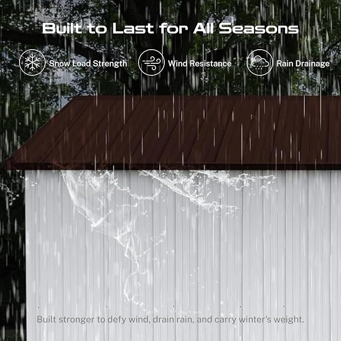 - 【Ultra-Durable for Harsh Climates】Constructed with 24/34-gauge galvanized steel, this weatherproof garden shed resists rust, 6 Beaufort winds (24-30mph), and heavy snow, ensuring a 10-year lifespan in coastal or snowy regions