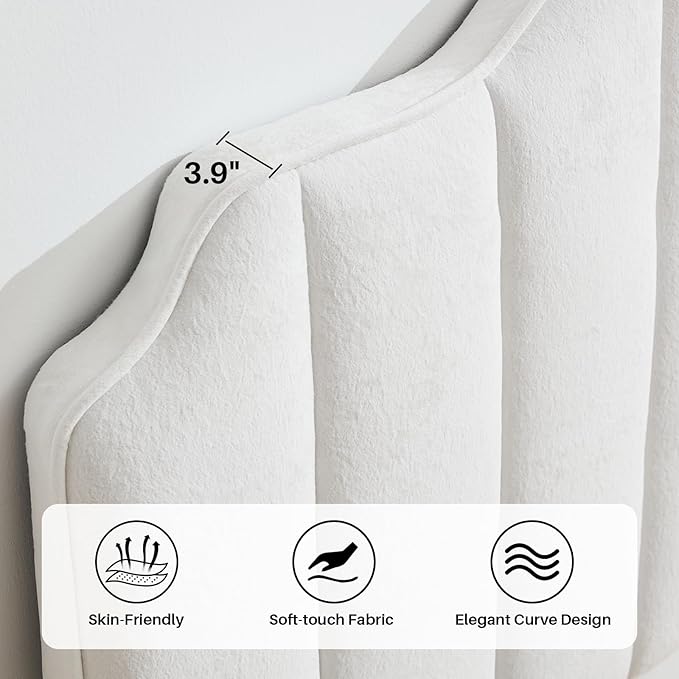- MODERN CURVED DESIGN: Blending contemporary lines with classic charm, the upholstered headboard features the elegant curved top and vertical channel design that create a clean, elevated look. Whether your bedroom leans traditional, modern, or somewhere in between, this design brings a cozy yet refined atmosphere to any interior style.