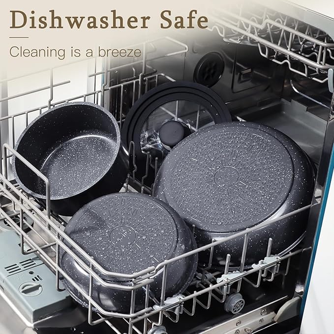 - Healthy Ceramic Coating - Made with 100% non-toxic ceramic nonstick coating, free from PFOA, PFAS, PTFE, lead, and cadmium. Enjoy healthier cooking with ceramic pots and pans set