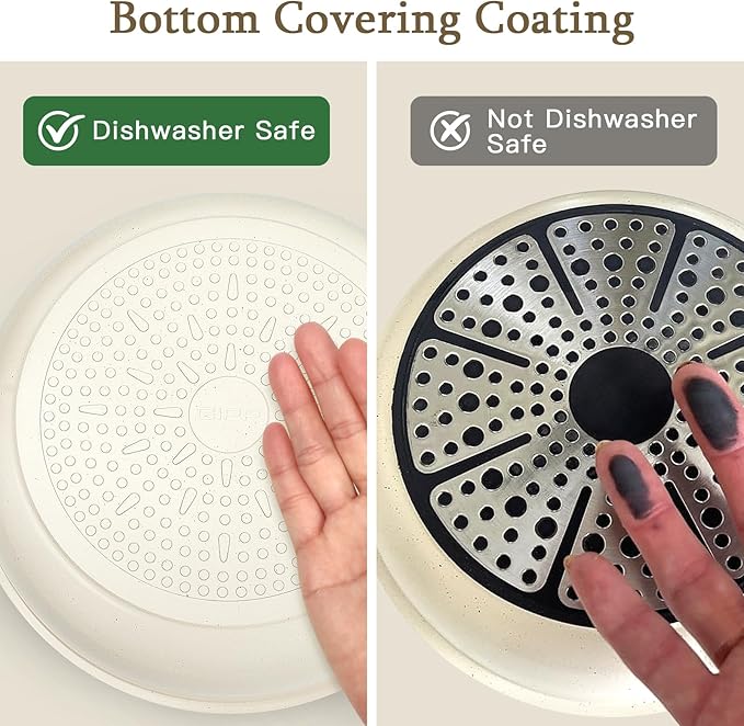 - Convenient Storage &Dishwasher Safe : Compared with traditional cookware, the ceramic cookware set can save about 70% space by removing the handle. It is compact and easy to stack, making it very suitable for small kitchens, RVs, or dormitories; Double sided ceramic coated cookware set can be directly put into the dishwasher,making it easy to clean oil stains