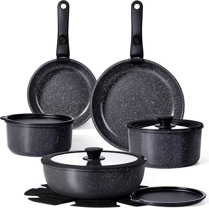 - Healthy Ceramic Coating - Made with 100% non-toxic ceramic nonstick coating, free from PFOA, PFAS, PTFE, lead, and cadmium. Enjoy healthier cooking with ceramic pots and pans set