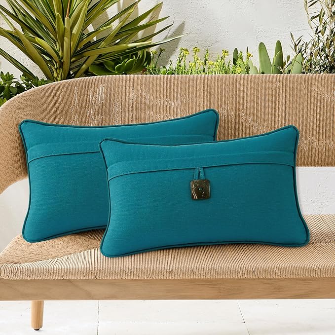 Outdoor Sunbrella Decorative Pillows with Coconut Button Pack of 4, 20" x 12" Outdoor Pillow Set for Couch Bed Throw Patio Sofa, Spectrum Peacock