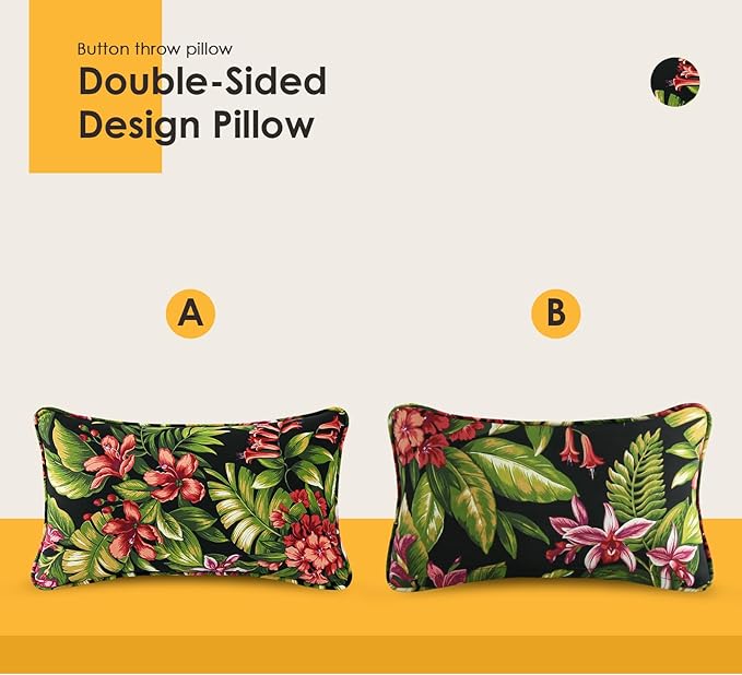 Outdoor Decorative Pillows Pack of 4, 20" x 12" Outdoor Pillow Set for Couch Bed Throw Patio Sofa, Red Flower Green Leaf
