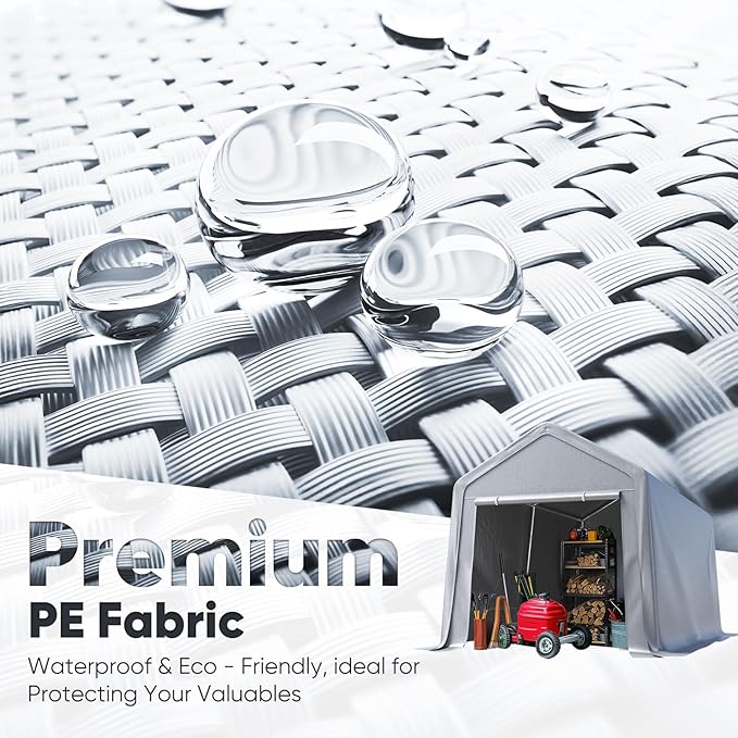 - 【Multiple Uses】This garden storage shed is perfect for storing motorcycles, lawn mowers, outdoor chairs, large umbrellas, bikes, skateboards, trash cans, children's toys, generators and other items.