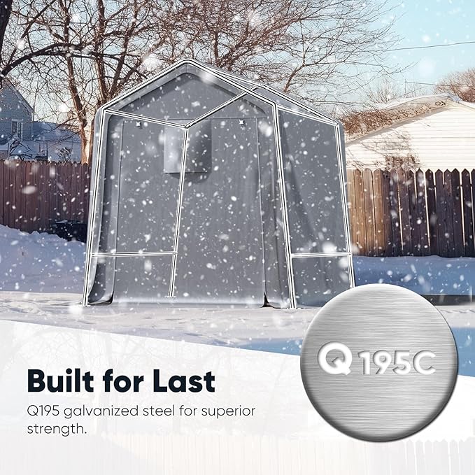 - 【Multiple Uses】This garden shed is perfect for storing motorcycles, lawn mowers, outdoor chairs, large umbrellas, bikes, skateboards, trash cans, children's toys, generators and other items.