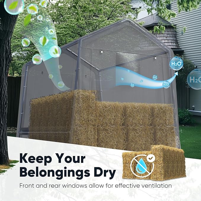 - 【Roll-up Ventilation Windows Design】1 mesh roll-up windows on door + ceiling airflow channel prevent condensation buildup. ideal for storage Lawn mower and other tools.