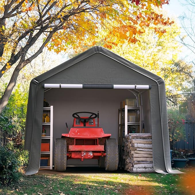 - 【Multiple Uses】This garden storage shed can be a motorcycle storage shelter, ATV storage shed, bike storage tent, or small vehicle garage shelter. It is also suitable for small lawnmowers, firewood or any other gardening tools.