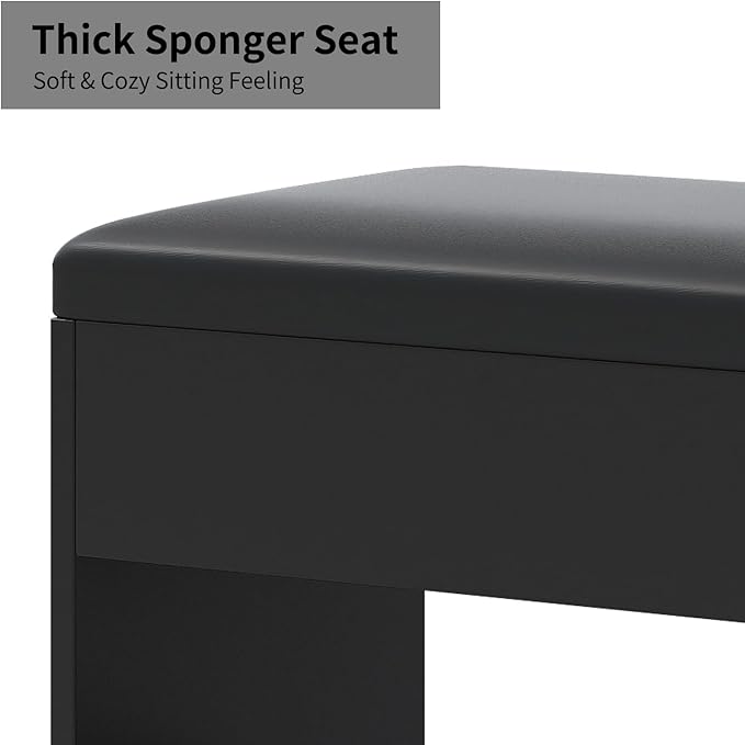 - Come with Vanity Chair: This vanity stool is made of premium flame-retardant sponge and fabric. Proper height and a soft cushioned seat will ease your fatigue and give you a more comfortable makeup experience. This vanity stool can be placed completely under the table without taking up extra space for the makeup room