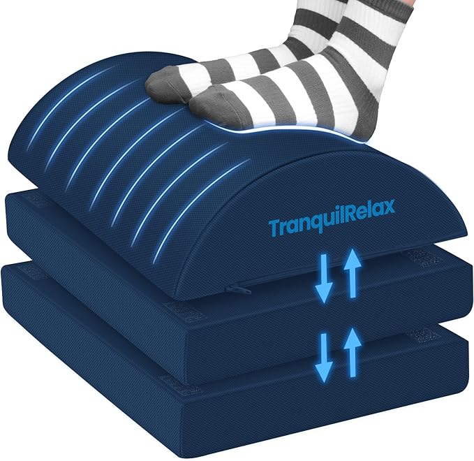 - Versatile Design: Use it under your desk for ergonomic leg support, under your knees for extra comfort, or flip it into a rocking foot rest for relaxation. This compact, adaptable foot rest brings comfort wherever you need it