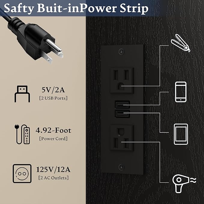 - Vanity Desk with Mirror, Charging Station & Hair Tool Rack: BORNOON modern vanity desk includes a built-in power strip with 2 AC outlets and 2 USB ports, allowing you to power your phone, curling iron, hair straightener, or Bluetooth speaker right at your fingertips. The side-mounted hair dryer holder helps declutter your vanity set and makes it easier to style in a rush. Ideal for women and girls who want both form and function in their bedroom vanity setup.