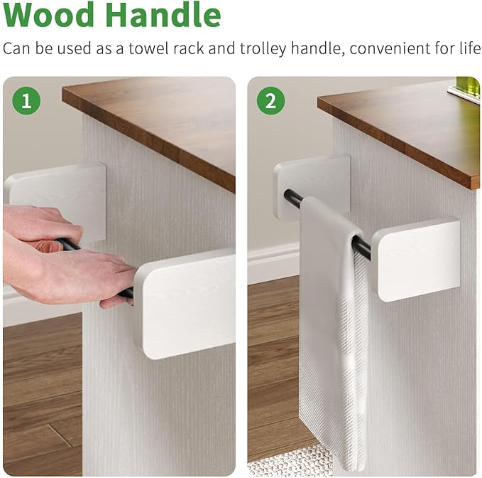 - Easy Mobility: The kitchen island with cabinets with four wheels can move smoothly to any place. the kitchen rolling cart two locking casters can make the kitchen carts on wheels stand stable, ensuring the flexibility of daily movement. The butcher block cart silent wheels will not make any noise during your movement