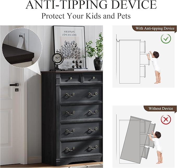 - 【Modern Farmhouse Series】The chic metal knobs, elegant and sturdy base, and classically wood pilasters all show off their sturdy and elegant beauty. Equipped with an anti-tipping device, it effectively prevents shaking or tipping and protects the family's safety