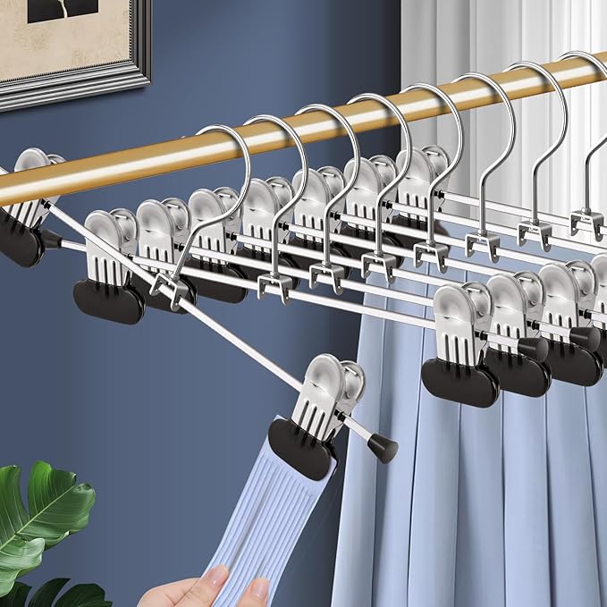 - Space Saving Pants Hangers: The Trousers hangers with clips is designed with ultra-thin structure, it is more durable and space saving than plastic or wooden pants hangers; Trouser Hangers Easy to use while keeping your wardrobe organized, these shorts hangers are for hanging your pants
