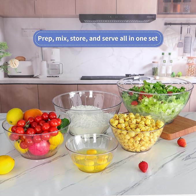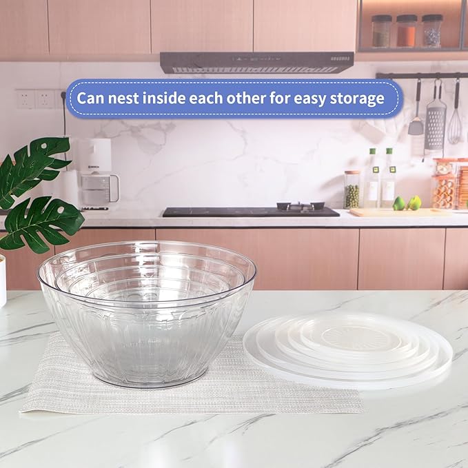 - Multiple Uses: Large mixing bowls with lids set is perfect for meal prep, mixing, serving, and baking, clear design makes it easy to see the contents and blends in with any kitchen decor