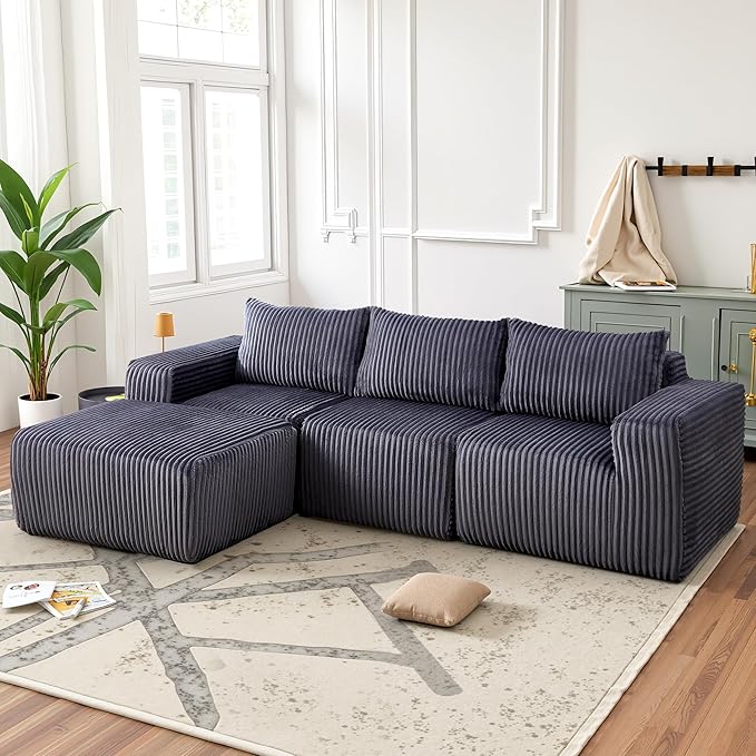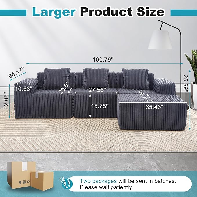 - Soft Fabric: This cloud combination sofa uses smooth and breath fabric, and through the L-shaped leisure chair surface design, it integrates ergonomic comfort and simple aesthetics. The three-dimensional ribbed texture enhances the visual temperature, and the memory foam cushion forms a multi-dimensional support structure, accurately restoring the immersive experience of sitting and lying in the cloud