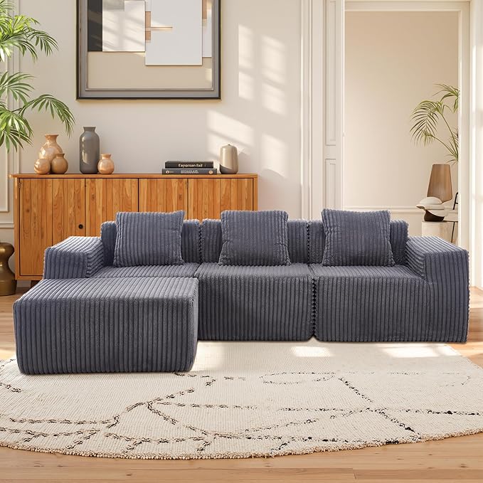 Sectional Couches for Living Room 125" L Shaped Cloud Couch Modern Modular Sectional Sofa Bad, Boneless Couch Oversized with Deep Seat, No Assembly Required, Dark Gray
