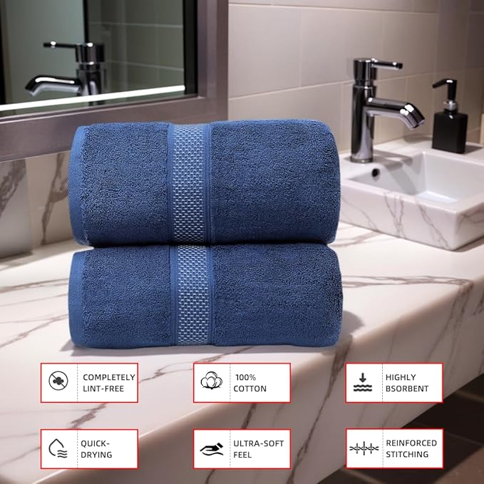 Super Absorbent Quick Drying | Hotel Grade Extra Large Bath Towels, 2-Piece Set, Bathroom Luxury Soft Towels-650GSM Cotton Luxury Beach Bath Towel 80x160cm (31.5x63 inches) (Dark Blue)