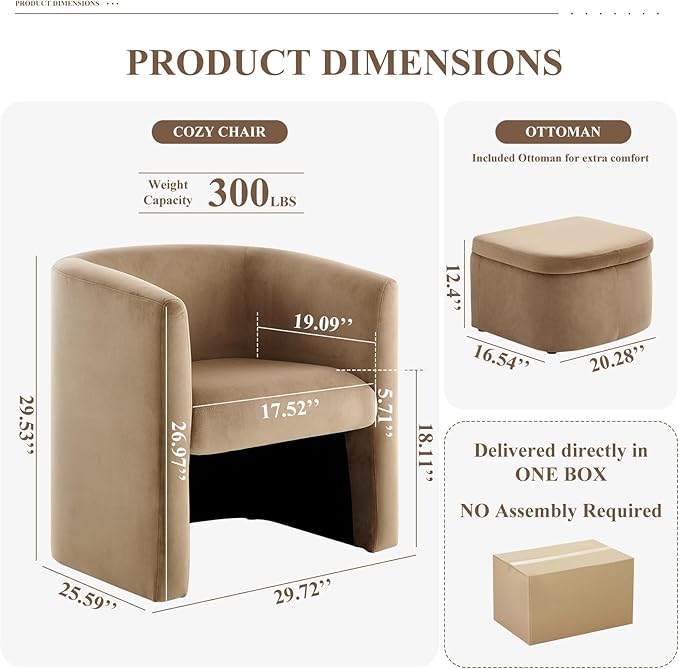 - Luxurious Velvet Comfort: Immerse yourself in luxurious soft Velvet fabric with our morden accent chairs. Experience ultimate comfort with padded armrests and a matching storage ottoman for a cozy reading nook or TV-watching haven.