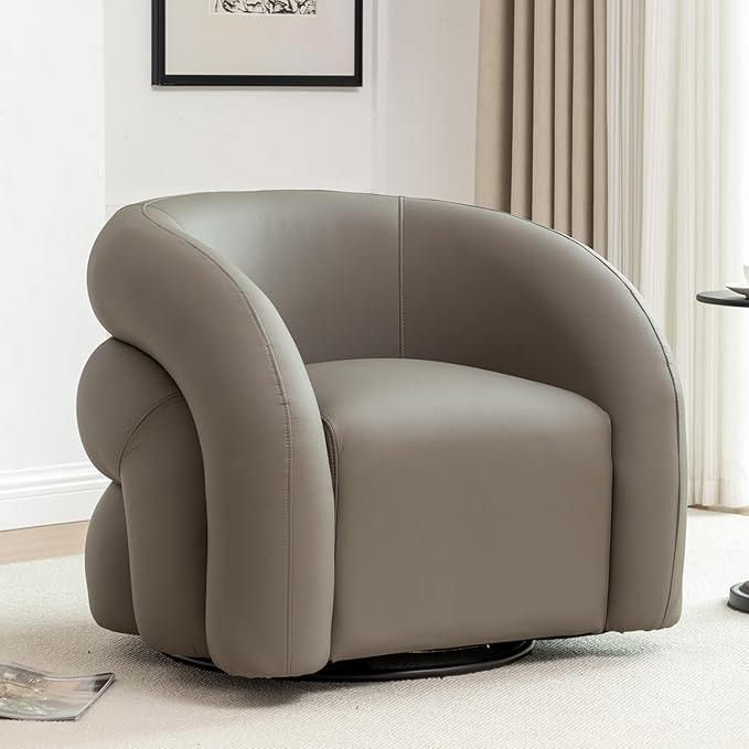 34.6" W Swivel Accent Chair, Modern Round Faux Leather Armchair for Living Room,Upholstered Comfy Sofa Chairs for Bedroom Reading Apartment Lounge,Fully Assembled(Grey)