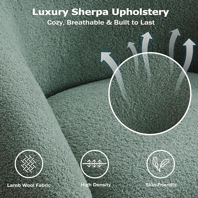 Swivel Accent Chair Set of 2,Upholstered Sherp Barrel Armchair 362Β° Round Modern Boucle Chair No Assembly for Living Room,Comfy Single Sofa Chairs for Bedroom(Green)
