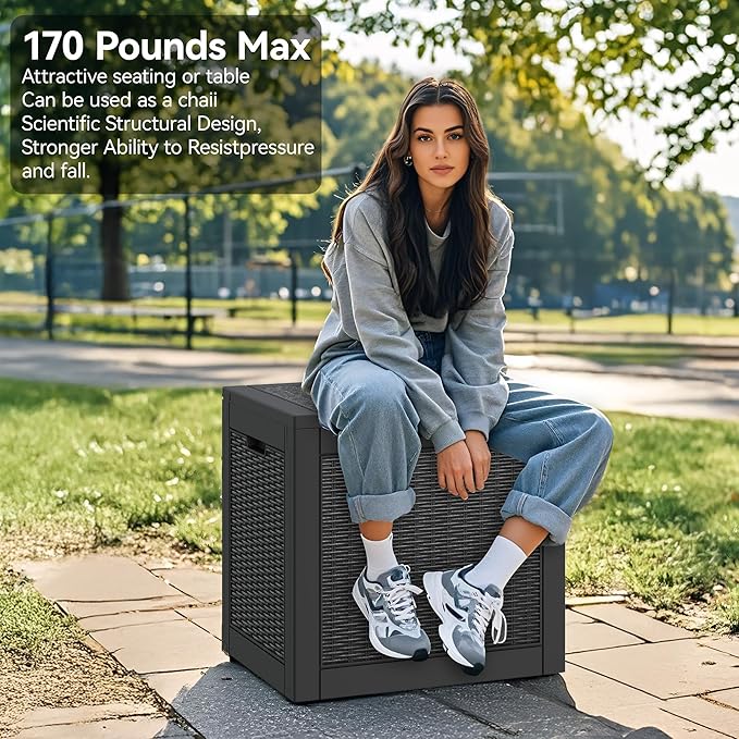 - πΉ π π¨ππ§π-π¨π¦π: π¦πππ§, π§ππππ & ππ’π« More than just a patio storage box, it doubles as a side table or extra seat with a weight capacity of 170 lbs. This outdoor storage box is as functional as it is stylishβperfect for poolside, patios, or decks.