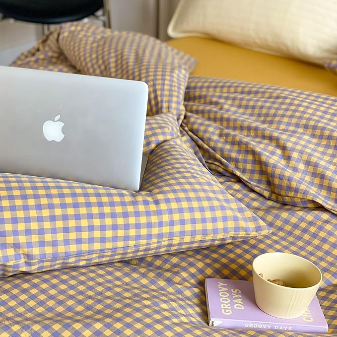 - ★【Choosing Comforter Set】--Whether you are purchasing a comforter set for your bedroom, college dorm, guest room, vacation home or anywhere else! The soft fluffy modern style Yellow/Purple gingham pattern comforter set is going to be a great choice of coziness and freshness--the geometric gingham pattern bedding set instantly livens up your bedroom with simple style. Including two matching pillowcases, perfectly matched with the checkered printed comforter.