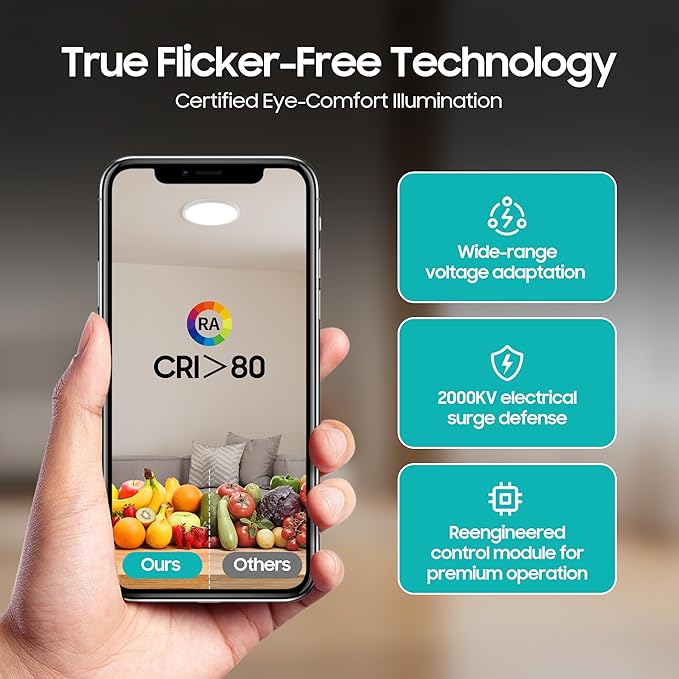 - 【Safe, Durable & Eye-Care Certified】Engineered with fire-resistant materials and short-circuit protection for worry-free use. Advanced heat dissipation ensures stable performance, while flicker-free, high-CRI light reduces eye strain—ideal for kids’ rooms or late-night kitchen runs.