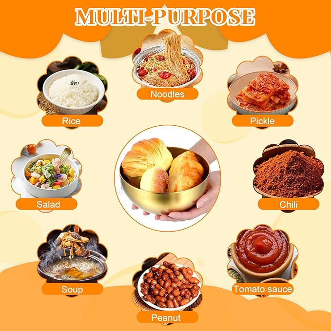 - 【Elegant Design】The gold color and smooth polished surface give these bowls an elegant appearance, making them a stylish addition to any kitchen or dining table. They are ideal for formal dinners, parties, or casual family meals.