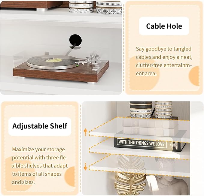 - Easy Setup: We offer illustrated and step-by-step instructions for easy installation. The TV console is simple to assemble with the instructions. More importantly, all hardware as well as parts you need are clearly numbered for easy identification