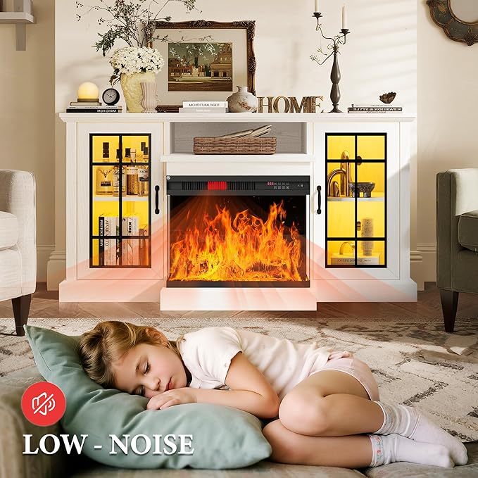 - Inherent Electric Fireplace: Equipped with an electric fireplace, this TV stands for living room provides both warmth and ambiance, making it perfect for cozy evenings and enhancing the overall atmosphere of your living space. Overall dimensions of the fireplace are 24.0"L x 7.1"W x 18.1"H