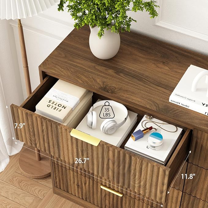- Ample Storage Space: With 8 deep drawers, this fluted dresser provides generous storage capacity for organizing and storing clothing, books, accessories, and personal items, helping you maintain a tidy living space. The wide wooden tabletop of the double dresser can also serve as a TV stand or a display area for your favorite decor items.