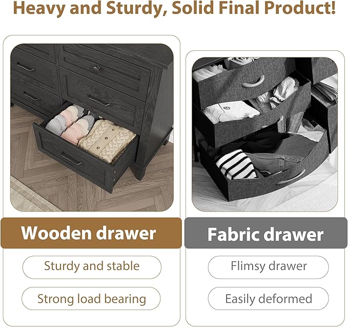 - AMPLE STORAGE SPACE: Our 6-drawer dresser offers abundant storage, featuring 6 ultra-deep drawers to accommodate all your daily essentials. The spacious desktop provides the spot for small items, lamps, and ets, allowing you to conveniently showcase and enhance your room's decor style