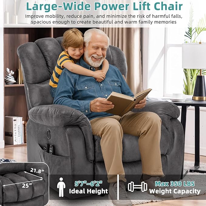 - 【Superior Material & Easy Assembly】Our recliner is made of high-quality bronzing suede fabric, visual effect similar to leather, soft to the touch, wear-resistant and easy to clean, and completely non-pilling. Super easy assemble and usually only need 10-15mins to finish the installation, no tools required. The large lift recliner comes with 3 boxes but the carrier may deliver on different days. Warranty: 1 Year (quality issues/shipping damage/missing parts during transportation)