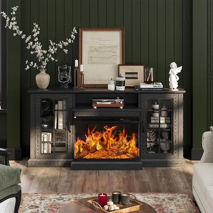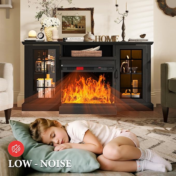 - Inherent Electric Fireplace: Equipped with an electric fireplace, this TV stands for living room provides both warmth and ambiance, making it perfect for cozy evenings and enhancing the overall atmosphere of your living space. Overall dimensions of the fireplace are 24.0"L x 7.1"W x 18.1"H