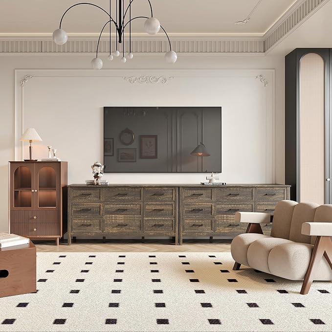 - Vintage Design Dresser: Embrace the timeless beauty of vintage design with this 9-drawer dresser. Our dresser features a textured and grooved drawer design, exuding a sense of refinement and elegance. The glossy black handles provide a classic touch, making it the perfect storage solution for your bedroom essentials.