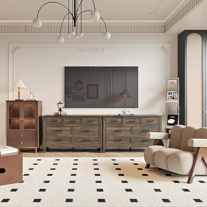 - Farmhouse 7-Drawer Dresser: The rustic charm of this dresser adds warmth and comfort to any bedroom, creating a cozy atmosphere. The natural grain of the wood brings a sense of authenticity and individuality to your living space, while the vintage design adds a touch of nostalgia and style. This dresser is perfect for adding a touch of farmhouse charm to any bedroom decor.