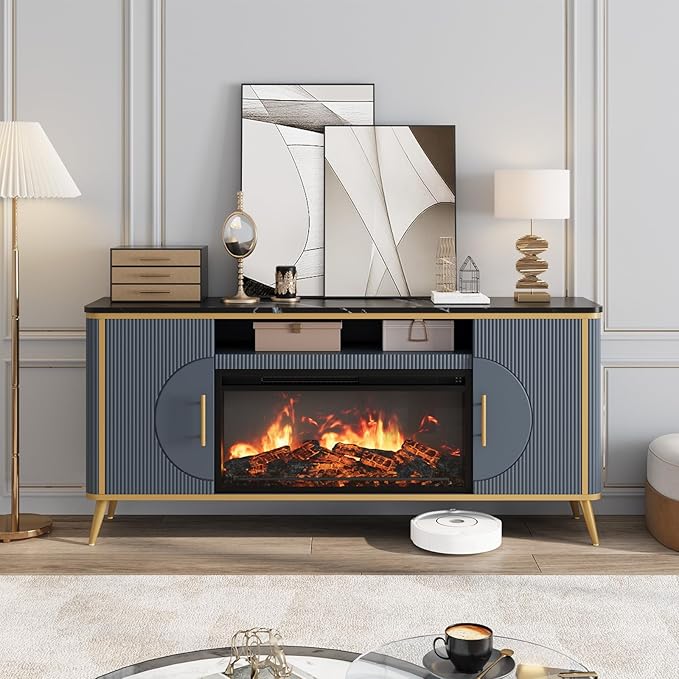 - Unique Fluted Design—This fireplace TV stand can blend seamlessly with your existing furniture style with its wave-like fluted panel and curved profile design. The premium simulated marble surface adds luxurious texture while rounded corners ensure family safety, making it the perfect storage and display piece for your living room and can bring a unique charm to your home!
