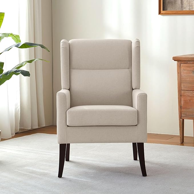 High Back Living Room Chairs, Fabric Accent Chair, Comfy Upholstered Armchair with Wooden Legs for Living Room, Bedroom, Apartment (1, Beige)