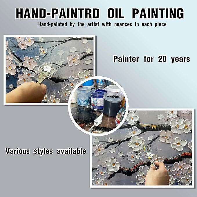 - 【Canvas Mural Size】Titled "Plum Blossom" The Size is 58" x 29" Since each painting is hand-painted, the actual painting may differ slightly from the product image. Due to different monitor brands, the actual wall painting color may be slightly different from the product picture.