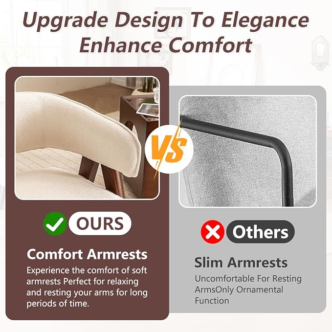 - 【Comfortable fabric provides extreme comfort】 : Our Modern accent chair is equipped with 8.7 inch thick plush cushion, and the backrest is made of comfortable and fluffy fabric and high-quality foam, which is soft and comfortable, bringing you a comfortable riding experience