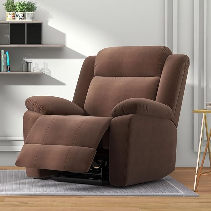 Bonzy Home Rocker Recliner Chair for Adults, Overstuffed Manual Rocking Recliner, Fabric Upholstered Single Sofa for Living Room, Brown