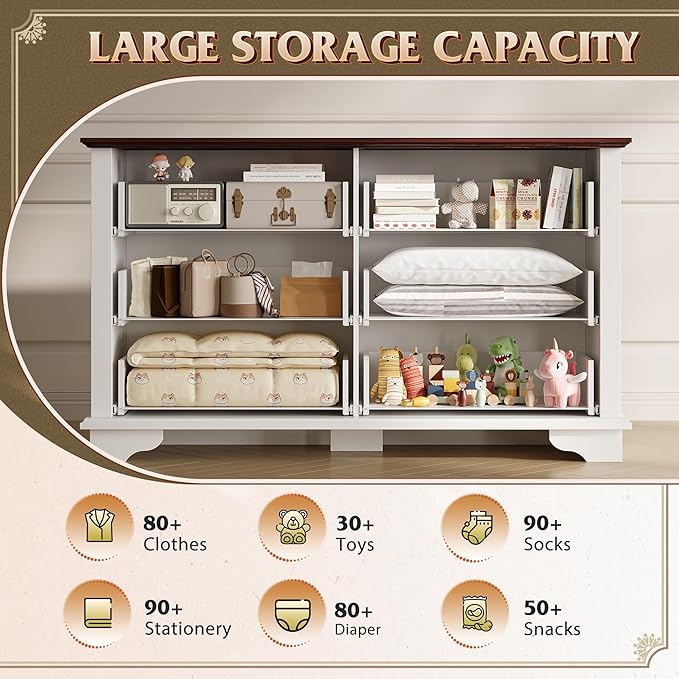 - 【Spacious Storage Space】The bedroom dresser measures 15.75"D x 51.97"W x 30.94"H, comes with 6 large drawers to store and sort clothes/toys/blankets and other household items. This dresser organizer also works perfectly as a TV cabinet and can hold up to a 60-inch TV.