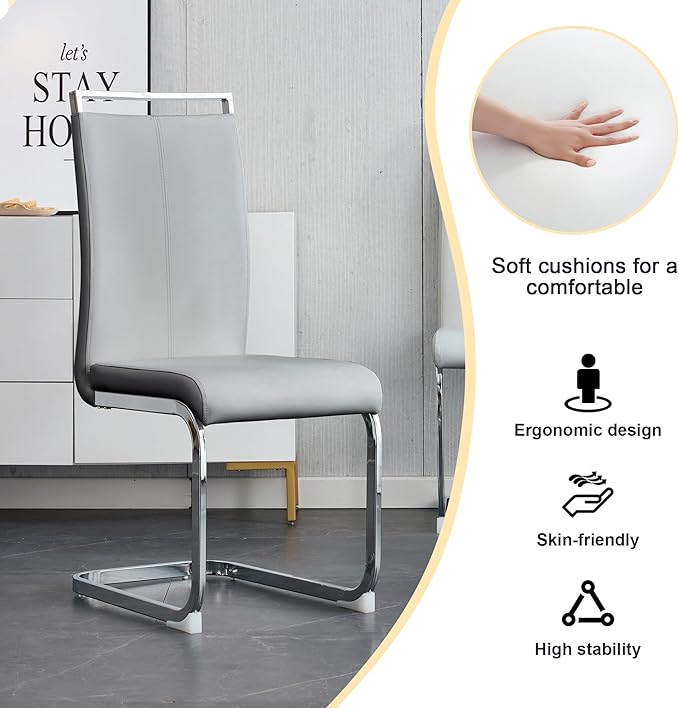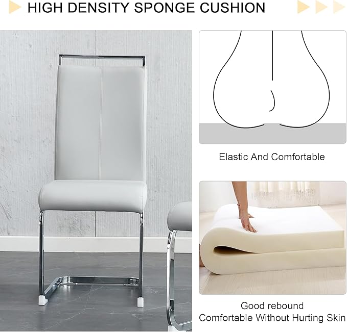- PU Leather Chairs with High-Density Cushion:Each dining chair is upholstered in smooth PU leather with a high-density sponge cushion for ultimate comfort. The ergonomic backrest, metal frame, and non-slip foot mats ensure stable support for long meals