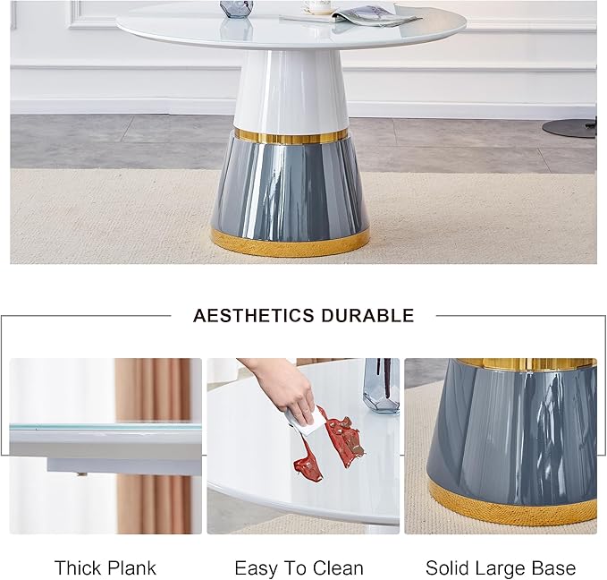 - 1-Inch Thick Tabletop & Durable Construction:Built with a 1-inch thick tabletop and a reinforced MDF base, this wooden round dining table offers long-lasting support. Smooth edges and sturdy connecting plate enhance durability in kitchens and small spaces