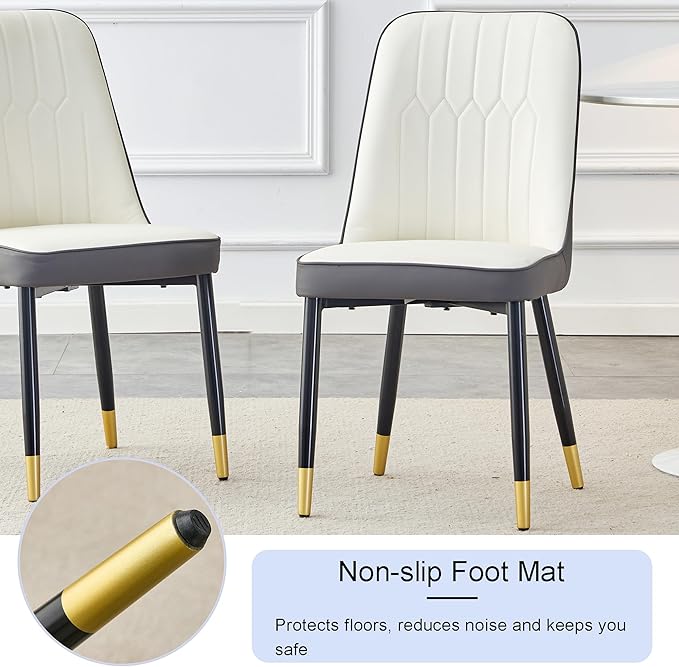 - PU Leather Chairs with High-Density Cushion:Each dining chair is upholstered in smooth PU leather with a high-density sponge cushion for ultimate comfort. The ergonomic backrest, metal frame, and non-slip foot mats ensure stable support for long meals