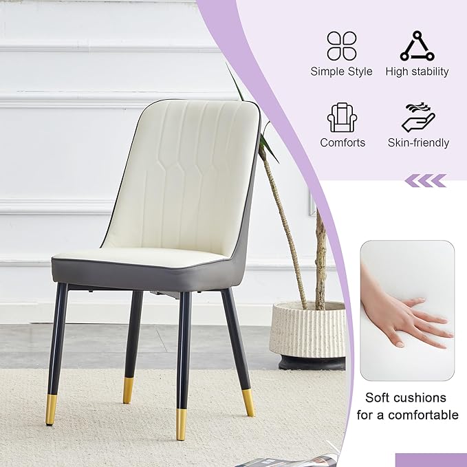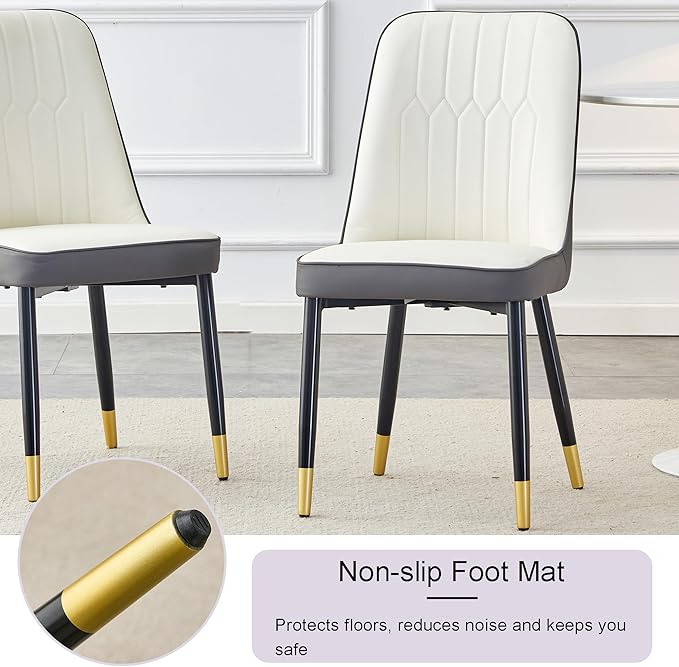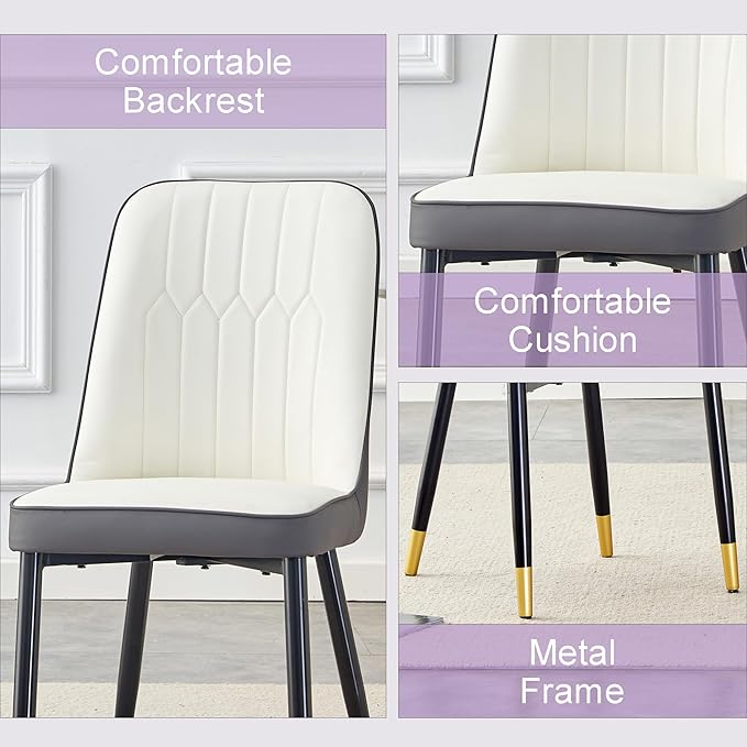 - PU Leather Chairs with High-Density Cushion:Each dining chair is upholstered in smooth PU leather with a high-density sponge cushion for ultimate comfort. The ergonomic backrest, metal frame, and non-slip foot mats ensure stable support for long meals